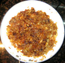 | Кунжутная паста, жареный лук, чеснок, лимонный сок. | В миске смешиваются жареный лук, чеснок, отварная фасоль, кунжутная паста. Ингредиенты измельчаются блендером, паштет заправляется лимонным соком. При подаче посыпается зеленью. |