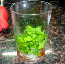 В принципе, листья можно и не отделять, поскольку соус готовится в блендере.Предпочтительней брать красный лук.