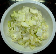 Капусту нарезать квадратиками со стороной 3 см.