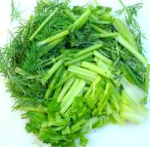 Выложить зелень и перец горошком в банку, добавить чеснок, нарезанный пластинками, горчицу.