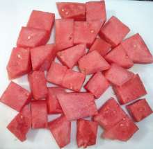 Арбуз нарезать кусочками толщиной 2-3 см.