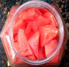 Арбуз будет готов через 2-3 недели. Подавать отдельно как закуску или в комбинации с другими солениями.