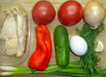 Узбекский салат "Бахор" с овощами и куриной грудкой