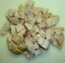 Куриную грудку нарезать кубиками.