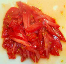 Также нарезать помидоры.