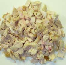 Курицу очистить от кожи, нарезать небольшими кубиками.