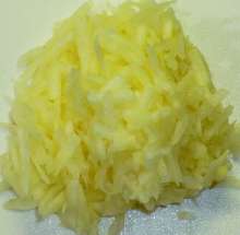В оригинальном рецепте яблоко также режется кубиками, однако на тёрке натереть его быстрее и распределится оно в смеси равномернее.
