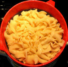 Холодной водой лапша промывается, чтобы прекратить процесс варки. Промытая лапша не слипается.