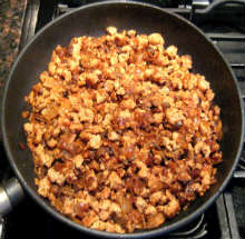 Поджарить на сильном огне, постоянно помешивая, до золотистой корочки.