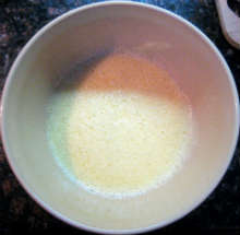 В миску разбить яйца, добавить молоко, щепотку соды.